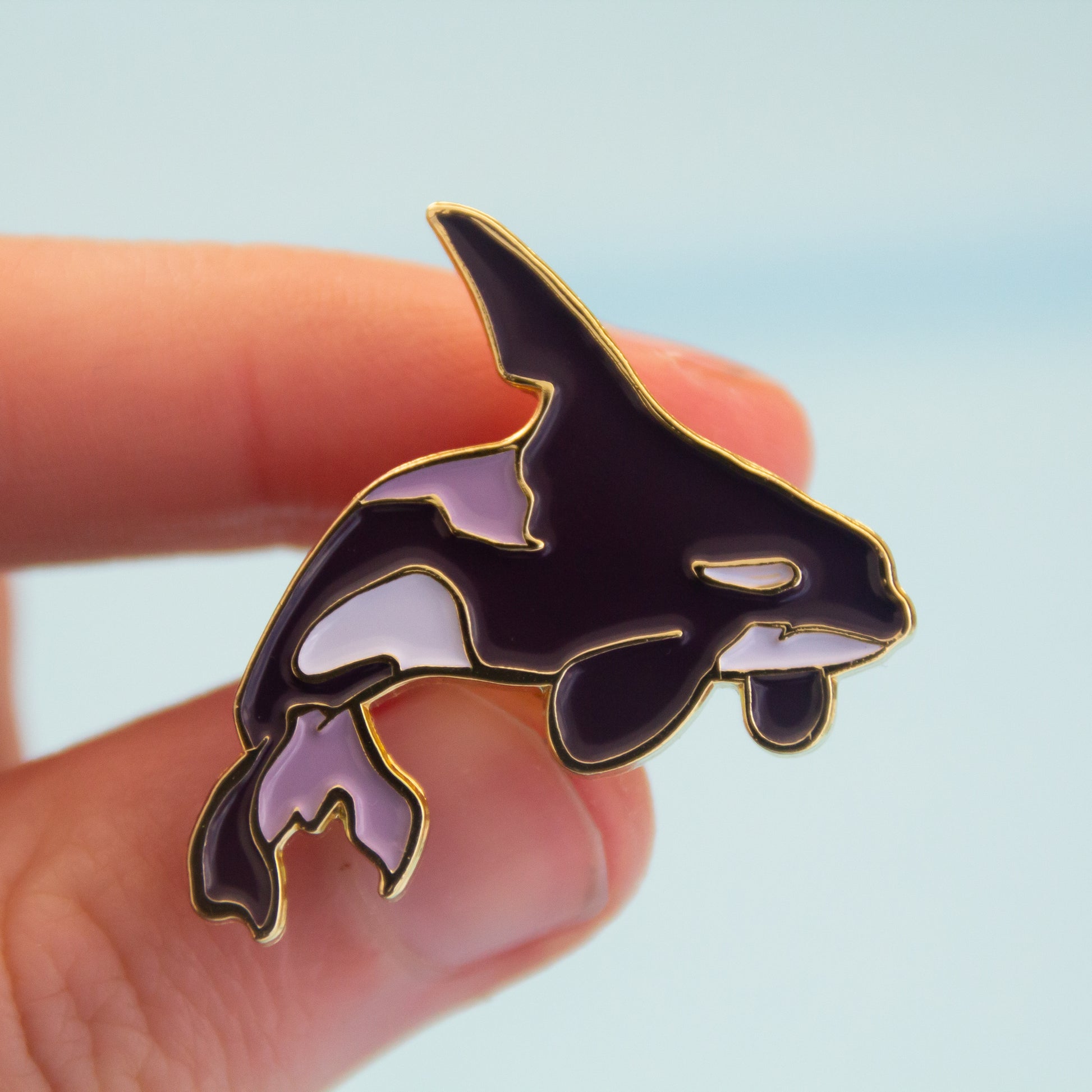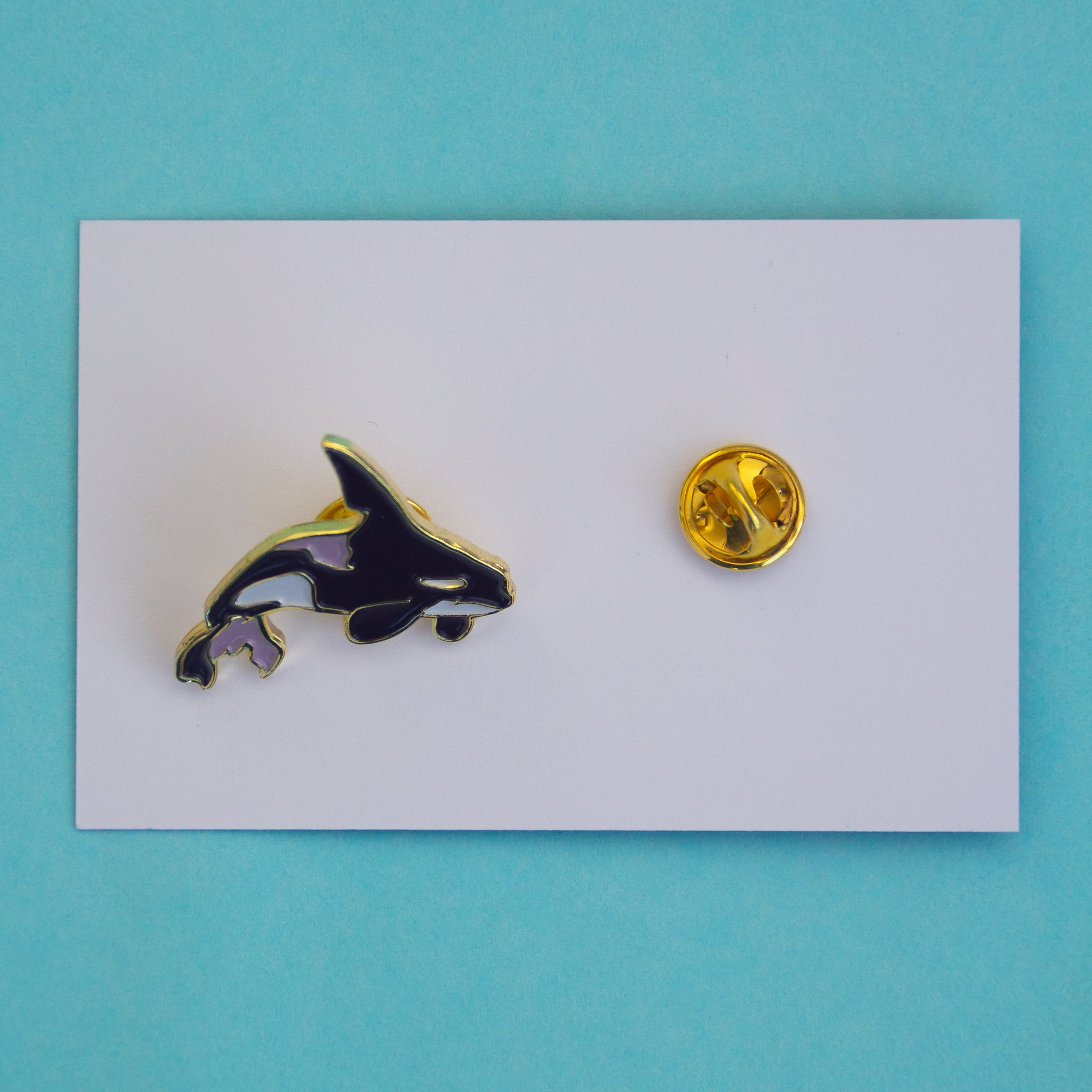 Soft enamel pin of the famous Scottish orca, John Coe. Comes with a backing card with information about him. Single butterfly clasp for attachment. Pin dimensions are 30mm x 30mm, card dimensions are 85mm x 55mm. Limited seconds sale pins available.